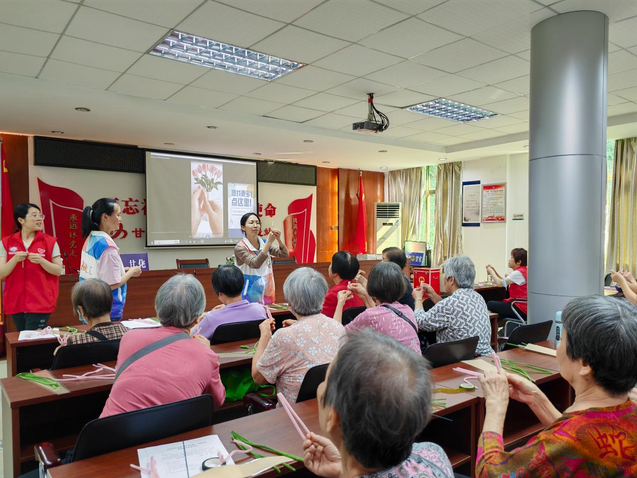 讲座结束之后,医务社工为迎接母亲节的来临,还给现场居民提供了手工花制作简单教程,居民们领取手工花制作的材料后,在社工的带领下很快完成了作品。居民们纷纷表示,此次活动很有意义,体验感十足,不仅学习了丰富知识,还提前收获了节日的礼物。
