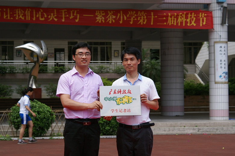 | 图为紫茶小学第13届校园“科技节” | 图为紫茶小学被授予学生记者站牌匾 |