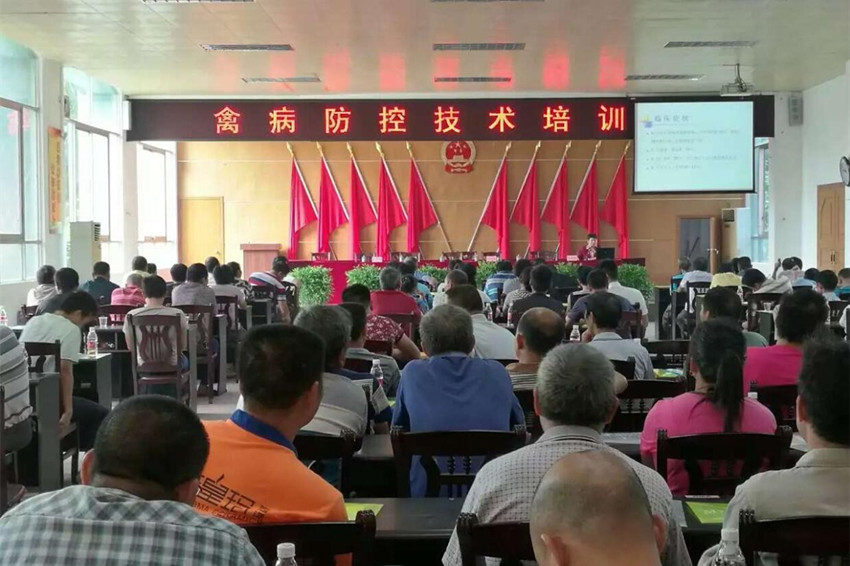 培训班上,关建新研究员以图文并茂的课件形式,向广大农户讲授了鸡的寄生虫病、细菌病、病毒病等传染性疾病,并以通俗易懂的语言介绍了主要鸡病的防控方法。冯开容高级兽医师以丰富的临床经验讲授了水禽疾病的临床诊断、实验室检测、免疫程序、科学用药等方面的知识。