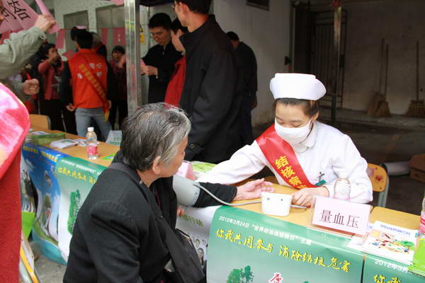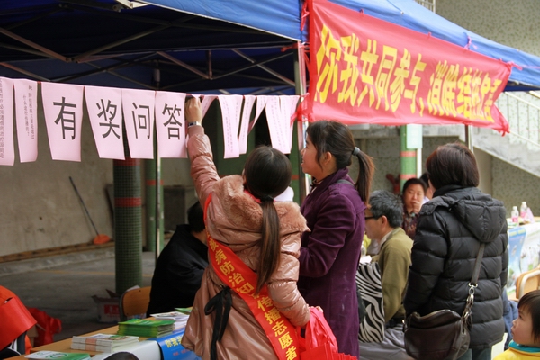 | 市民群众积极参与有奖竞猜现场 | 医护人员为群众测量血压 |
