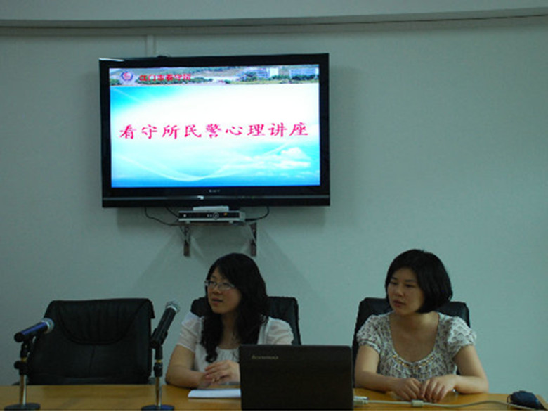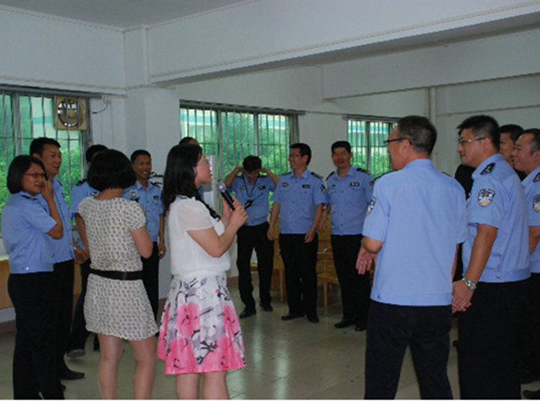 | 看守所民警心理讲座现场 | 咨询师与民警开展心理拓展活动 |