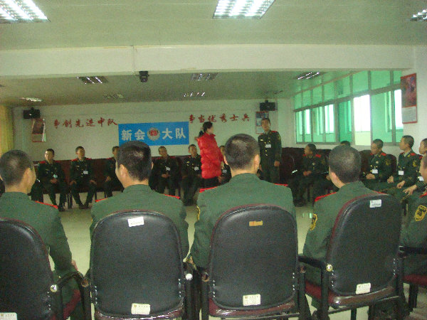 在军营活动期间,心理咨询专家为消防新兵讲解心理健康的标准、心理问题的原因、心理问题的表现以及应对方法等心理健康常识,并针对新兵心理特点,教给新兵一些日常处理压力的小窍门和技能,让新兵学会调适心理,尽快地适用军旅新工作和新生活。其后进行团体心理辅导,即时帮助新兵们减轻压力、放松心情。在“敞开心扉”环节,新兵们踊跃发言,分享其在军营的经历和感受;在“心有千结” 环节,专家帮助他们认识的心“结”、打开心“结”;在“给家人的一封信”环节,唤起新兵对家人的思念,让新兵更加珍惜现在的相聚,把军旅建设成为一个温暖快乐的大家庭。