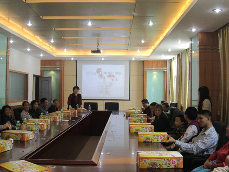 图为心理咨询师为康复者及家属举办健康讲座