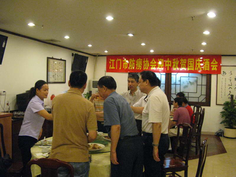 9月28日下午,在举国欢庆新中国60华诞,喜迎中国传统中秋佳节之际,江门市防痨协会举行迎中秋贺国庆酒会。参加酒会的有来自协会各行业的理事和防痨医务工作者的代表共40多人。还邀请了市人大、市政协、市科协等部门领导出席酒会,大家举杯共饮,共贺祖国60华诞,并祝愿我市防痨事业更上一层楼。