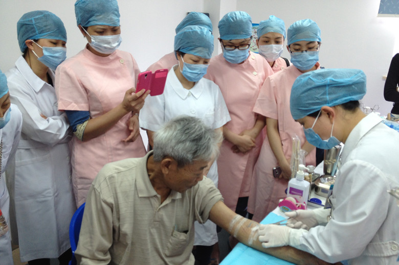 培训在护理学会陈玉珍理事长致辞后拉开帷幕,护理专家分别讲解《PICC置管的评估和健康教育》(梁素芳护长)、《PICC导管的标准维护》(谭美仲护长)、《PICC常见的护理问题及处理》(梁素霞护长)等课程,内容丰富、主题鲜明,之后,再通过操作演示及临床实习,规范了PICC导管的维护。期间,参加学习的护理人员踊跃交流,积极讨论现存PICC导管护理的疑难问题。“这样的培训班为从事PICC导管维护的护理同行们,搭建了很好的学习交流和自我提升的平台。”来自市五邑中医院的一位护理人员说。
