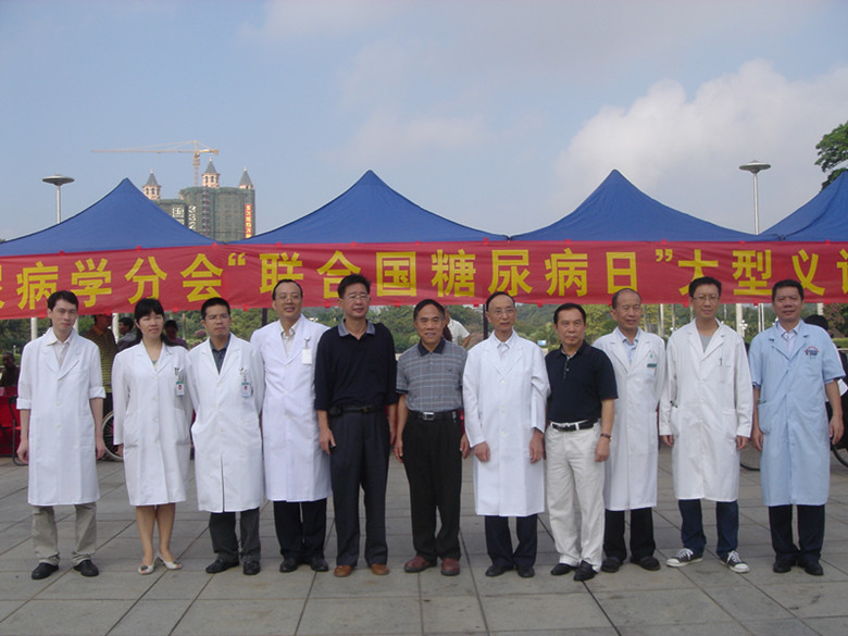 11月14日是“联合国糖尿病日”,为提高公众主动防控糖尿病的意识,自觉养成良好的健康行为和生活方式,江门市医学会糖尿病学分会于11月10日上午在东湖广场举办2012年联合国糖尿病日科普活动。活动主题是“糖尿病教育与预防”,口号为“保护我们的未来,关注糖尿病”。参加本次活动的医务工作者有市中心医院主任医师林健才、陈泰祺、副主任医师陈江平、陈华琴、毛汉、副主任护师吕丽珍、市第三人民医院副主任医师叶智宾、江海区人民医院副主任医师李东光、涂长青、红十字会医院副主任医师何相成、新会区妇幼保健院副主任医师彭建华、李思会副主任医师等20多名糖尿病专家和专科护士。市科协张兴副主席、市医学会李仲宏会长、黄宝明副会长等出席活动。