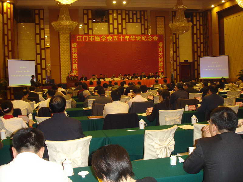 12月19日,江门市医学会在逸豪酒店会议厅召开成立五十周年纪念大会,参加会议有各医院单位的团体会员、科技工作者的会员代表共120多人。江门市人民政府副市长陈杭、江门市政协副主席赵树培出席会议。市医学会李仲宏会长致欢迎辞并作了纪念学会成立50周年的工作报告,市卫生局领导在大会上致贺辞,会议还举行了“江门市先进分科学会”、“江门市医学会建设贡献奖”的颁奖仪式。