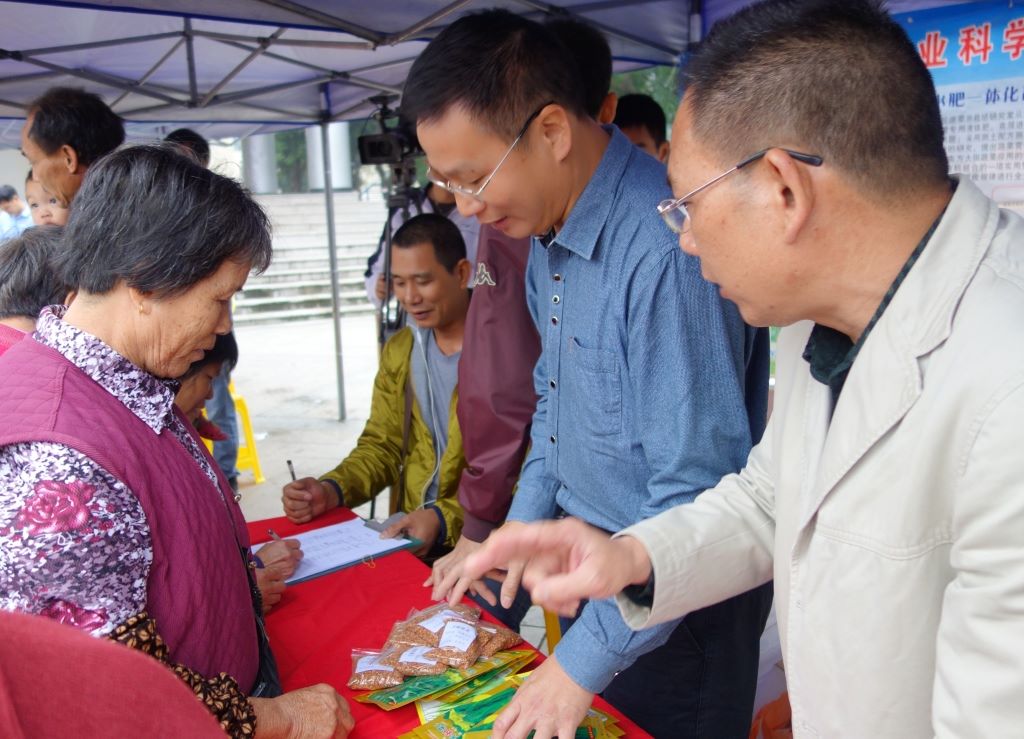 现场,农业技术人员正在为群众解疑答惑,并普及《种子法》、优劣农作物种子鉴别知识以及鉴别技巧,前来咨询了解的农民将农学会摊位围得水泄不通。何伯向农科专家了解了水稻优劣种子的鉴别技巧,又领到一包谷种后喜滋滋的表示,“这样的科技下乡活动很及时,在家门口就有,太方便了!”还有几位农民听说要搞“科技下乡”,田里插了一半就风尘仆仆的赶过来了,“一定要向专家问问这种水稻的新技术!”。