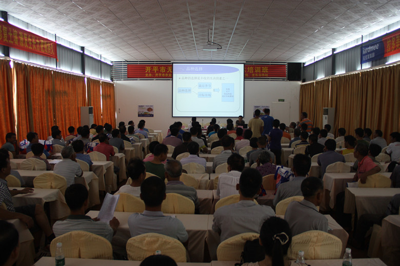 7月23日上午,开平市科协联合市科技局、市农业局、市供销社等有关部门在开平市水口镇沙冈村举办无公害蔬菜高产栽培技术培训班。邀请了江门市农科所陈仕军高级农艺师作《无公害蔬菜高产栽培技术》讲座。水口开新村、向阳村等11个村的蔬菜种植农户200多人参加了培训。