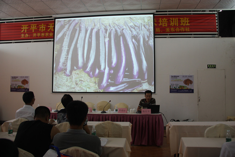 陈仕军高级农艺师结合开平市水口镇的种植环境,从品种推荐、育苗技术、整地起畦、移栽定植、田间管理、病虫害防治等六大方面,详细讲解了茄科植物种植技巧,传授了科学种植蔬菜知识,并推荐了一些常用的无公害化肥和农药让广大种植户放心使用。期间,他与部分蔬菜种植农户就虫害防治、近期气候变化对蔬菜的影响等实际问题进行互动交流。