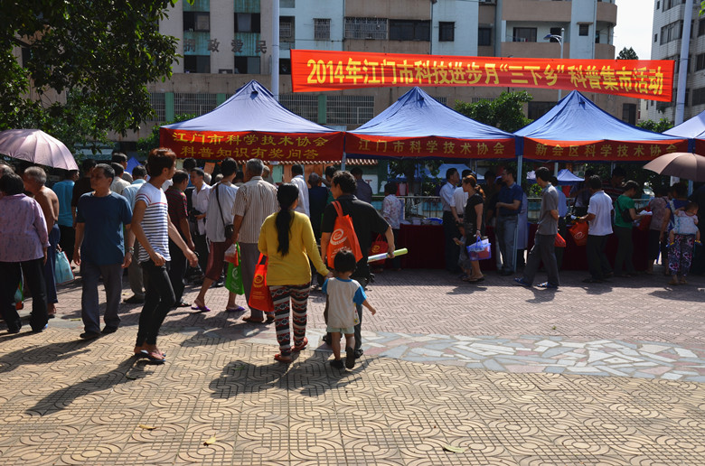 5月19日,获悉我市按照中宣部、农业部、中国科协等14部委《关于2014年深入开展文化科技卫生“三下乡”活动的通知》工作要求和全省“科技进步活动月”的工作安排,结合我市巩固全国文明城市创建成果,进一步完成《江门市全民科学素质行动计划纲要实施方案(2011-2015)》工作任务,开展了一次深入群众、为群众服务的公益活动。于5月16日上午,由江门市科协、江门市农业局联合组织22个相关学会、协会和有关部门企业的100多名科技工作者和科普志愿者,在新会区三江镇中心市场广场隆重举行江门市科技文化卫生“三下乡”科普集市活动。江门市政协副主席、市科协主席赵树培以及市、区有关部门和单位的负责人出席了活动。