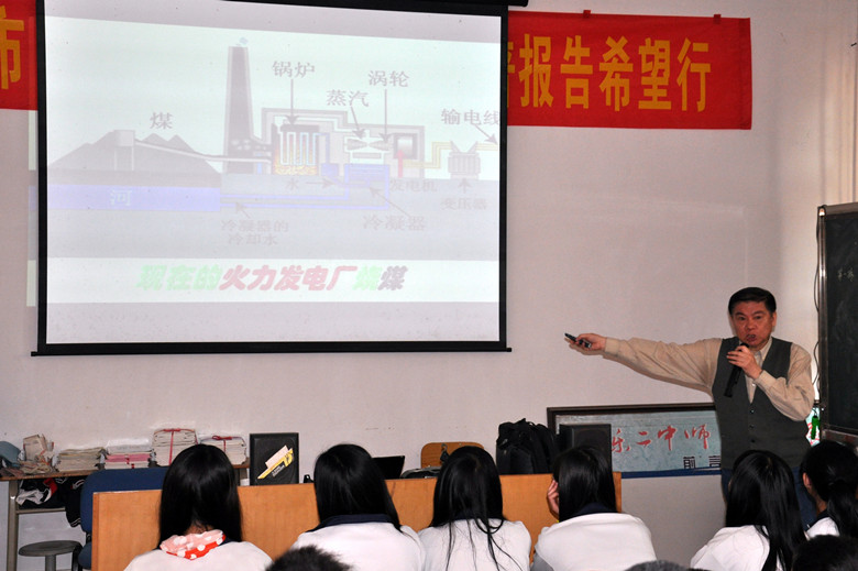 首场科普演讲在江海区礼乐中学举行,由中国科学院老科学家科普演讲团成员陈贺能研究员为在校200多名师生作《人类对替代能源的探索》报告,他用通俗易懂的语言深入浅出地讲述了“科学理论”和“科学实践”,生动的语言、精彩的报告赢得了在场师生的一阵阵热烈掌声。良好的互动效果,浓郁的科学氛围,科学家以“大手拉小手”的形式,伸出“大手”拉起学生们的“小手”,唤起他们热爱科学、崇尚科学的热情,启发他们去探索科学的奥秘,引领他们走进科学的天地。