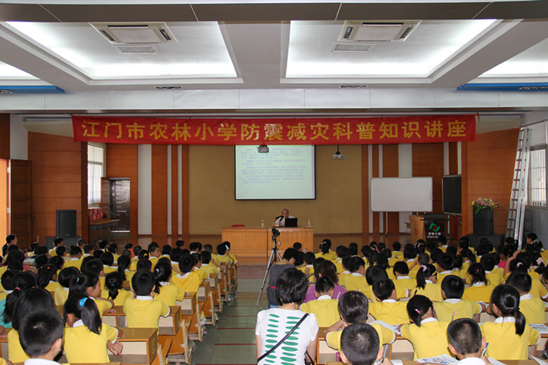 | 图为在农林小学防震减灾科普讲座现场 | 图为在农林小学防震应急疏散演练现场 |