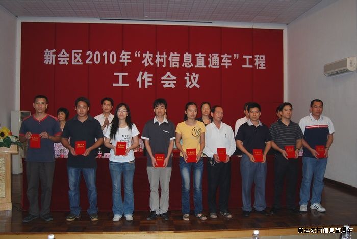 新会区副区长张曦出席会议并讲话。他在会议上总结了过去一年来全区农村信息直通车工程取得的成绩和部署了下一阶段工作任务。他要求要提高认识,落实责任,把农村信息直通车工程与农村党风廉政信息公开平台建设紧密结合,要强化管理、培训,进一步加强信息员队伍建设,还要强化服务,充分发挥区农村信息直通车工程综合服务中心的信息服务枢纽作用。会议表彰了2009年度农村信息直通车工程优秀信息员、先进镇(街)项目办和先进单位。