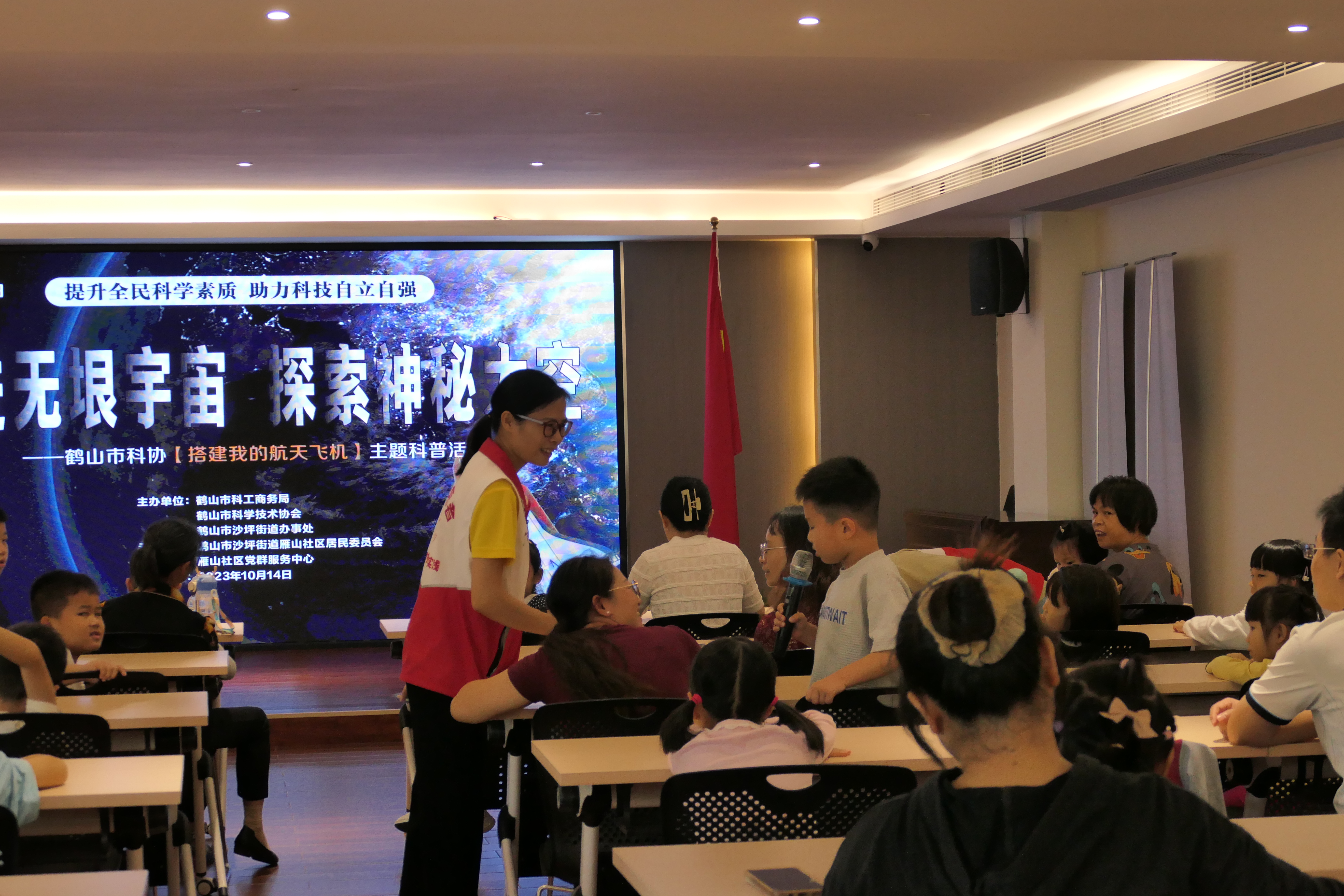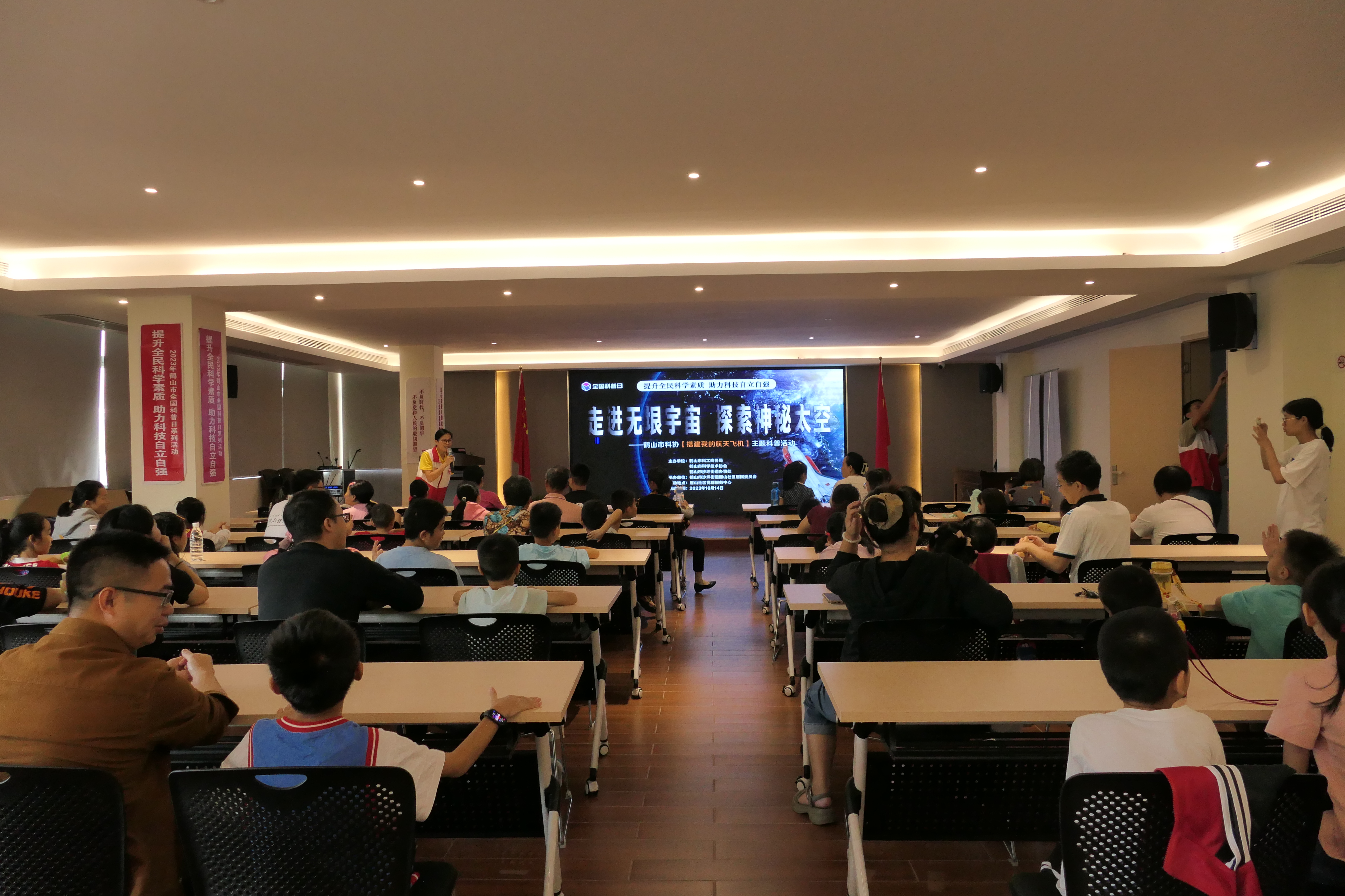 为响应全国科普日活动,在全市营造热爱科学、崇尚科学的良好氛围,提升全民科学文化素质。10月14日,鹤山市科工商务局、鹤山市科学技术协会、鹤山市沙坪街道办事处在沙坪街道雁山社区党群服务中心联合举办2023年鹤山市全国科普日系列活动“走进无垠宇宙,探索神秘太空——搭建我的航天飞机”,来自雁山社区的30对亲子参加了活动。