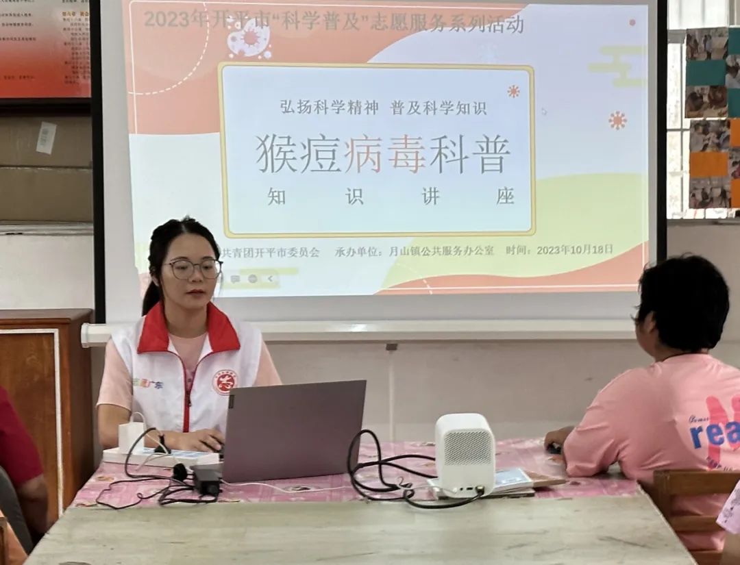 为进一步普及猴痘病毒防治知识,提升残疾人自我保护意识,预防猴痘病毒传播,近日,由共青团开平市委员会主办,月山镇公共服务办公室承办的2023年开平市“科学普及”志愿服务系列活动之“弘扬科学精神 普及科学知识”猴痘病毒科普知识讲座在月山镇康园中心举办。