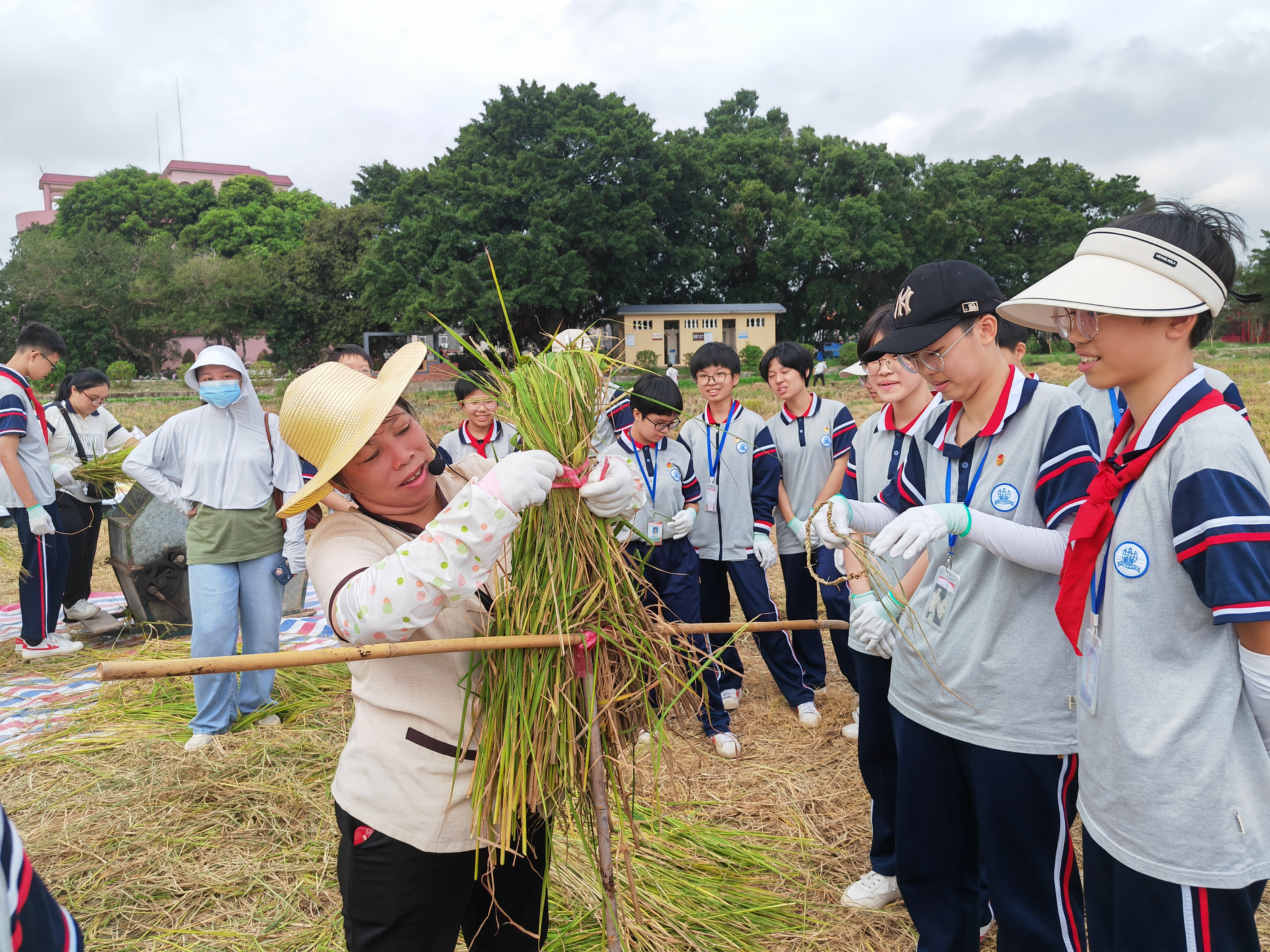 紧接着,学生们来到台山市农业公园科普教育基地,由基地的农耕导师为学生们讲解农耕文化,让学生们认识农耕过程、农耕规律、农耕工具,并介绍现时科学种植的方式,使大家了解互联网、大数据、无人机等“智慧”种植元素的应用。随后,由农耕导师演示收割方式并指导学生们开展割禾、脱粒、去草碎、制作稻草人的农耕项目,让学生们体验早期农耕的艰辛和重要性,增强对农民的尊重和感激之情。