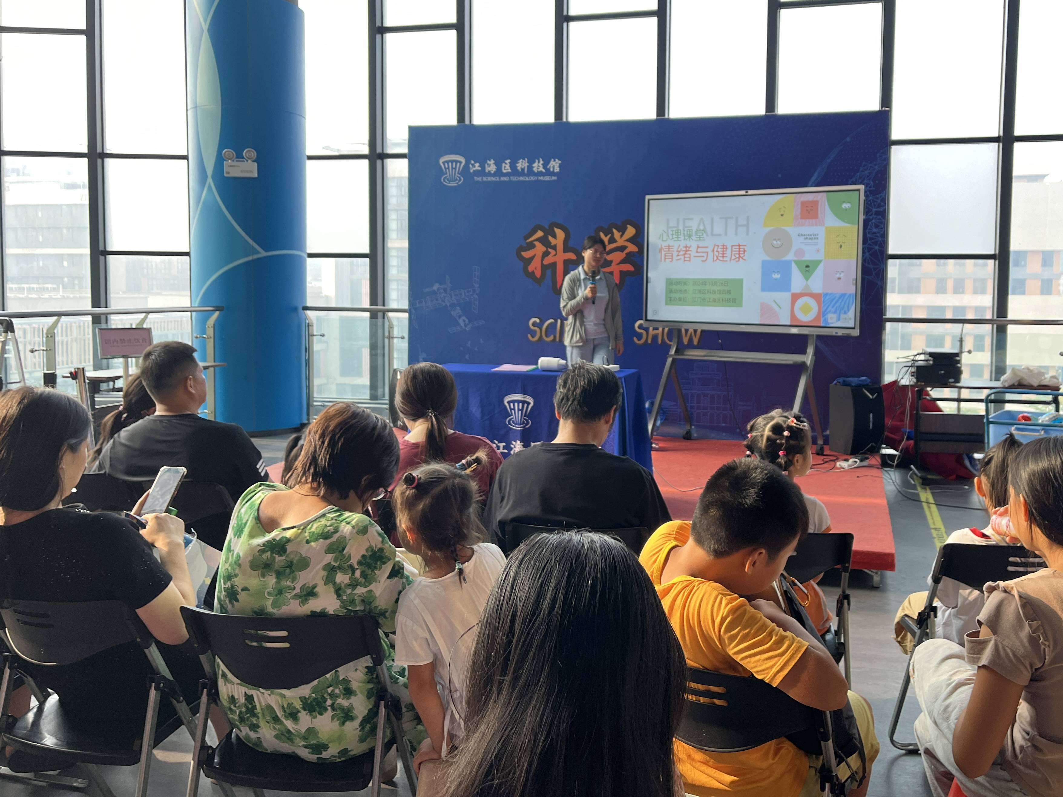 为进一步加强青少年的心理健康教育,促进身心健康发展,帮助他们调节心理适应能力、缓解心理压力,近日,江海区科技馆开展“用心沟通 共助成长”的心理健康知识讲座。