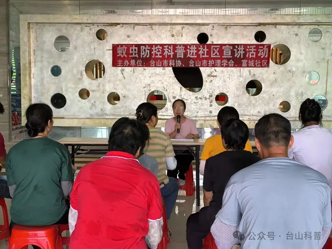近日,为让防蚊知识走进千家万户,台山市科协联合台山市护理学会在东云、富城、金星三个社区连办5场“家门口”的科普宣讲活动,把防蚊知识送到街坊邻居身边。