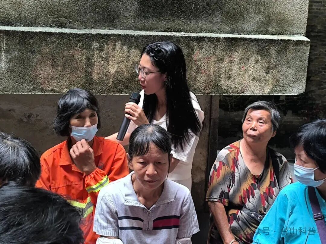 活动不止在临时的“院子里”,更走进“家门中”。台山科协组织医学、教育、林业等领域的科技工作者进楼道、入商铺,挨家挨户查看积水隐患,手把手教大家正确使用驱蚊产品,叮嘱“密闭空间点完后要记得开窗通风”。