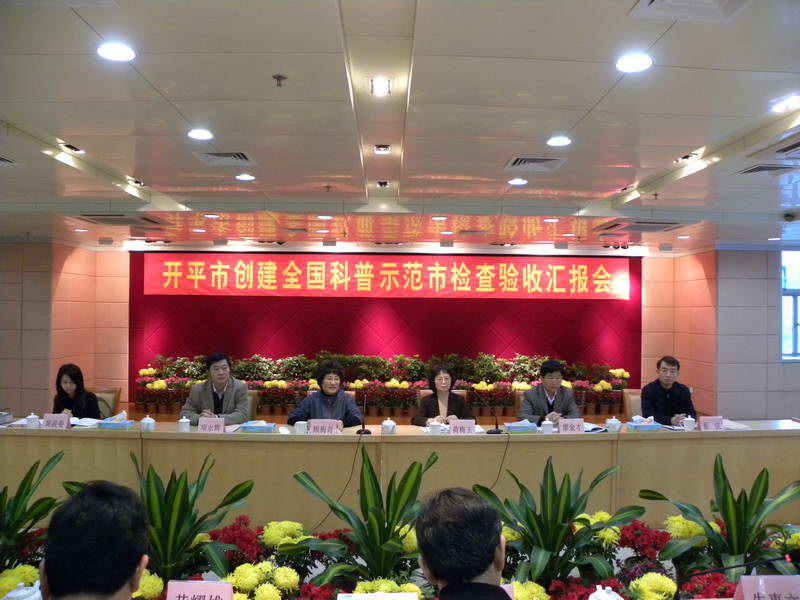 广东省科协受中国科协委托,专门成立创建工作检查验收工作领导小组,在省科协党组成员、检查验收组组长黄梅玉的率领下,于3月8日至10日分别前往我市新会、开平检查验收创建全国科普示范县(市、区)工作。检查验收组按照中国科协《关于开展2011-2015年度全国科普示范县(市、区)创建单位开展检查验收工作的通知》部署,按照检查验收采取“听取汇报、查阅资料、实地考察、座谈会议、交叉检查、量化评分”方式进行。江门市政协副主席赵树培以及新会区、开平市的人大、党委、政府、政协领导出席了创建工作检查验收会议。