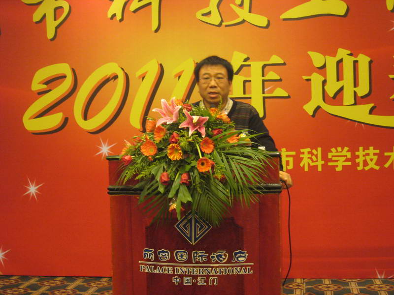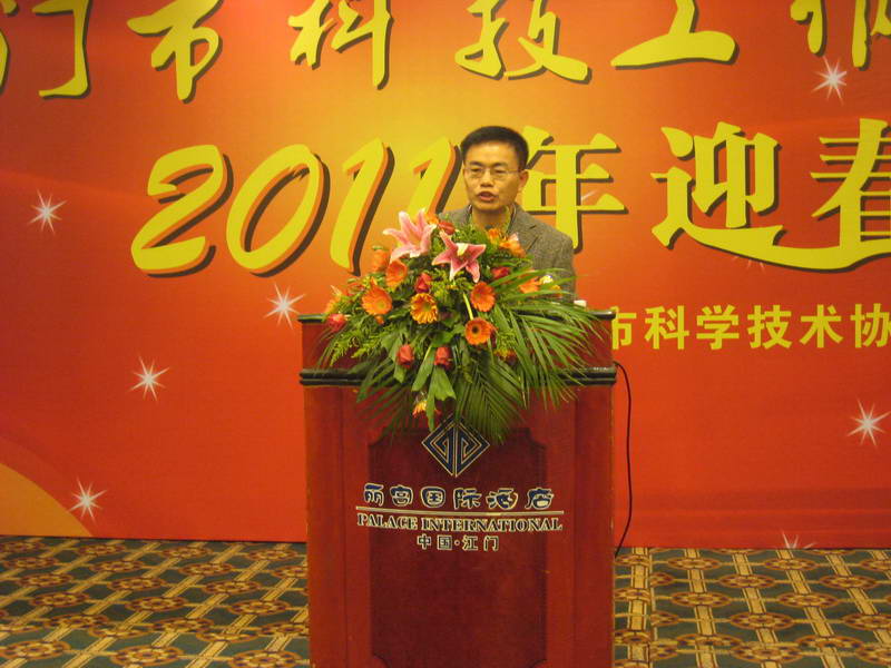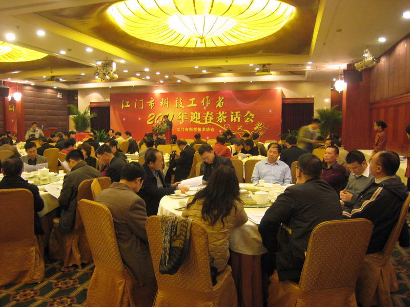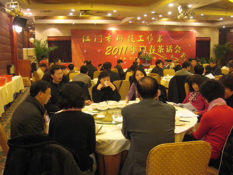 1月18日,新春来临之际,江门市科协在丽宫(国际)酒店举办2011年科技工作者迎春茶话会。来自全市各行业的135名科技工作者代表,齐聚一堂,共贺新春。市政府副市长易中强,市政协副主席赵树培、叶一鸣,五邑大学副校长狄剑锋,市政协秘书长赵崇柏以及市人大、市委、市政府、市政协等有关部门领导出席了迎春茶话会。