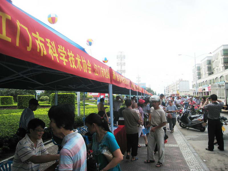 5月21日,按照全省科技进步活动月的统一部署,江门市科学技术协会和江门市农业局于当天上午联合有关学会、协会和涉农单位等23个部门,组织卫生、农业专家36名和科普志愿者33名在新会区双水镇举办江门市送科技卫生文化下乡集市活动。集市活动吸引了当地镇村群众和企业员工近5000人。江门市政协副主席赵树培亲自参加了活动并作现场指导工作。
