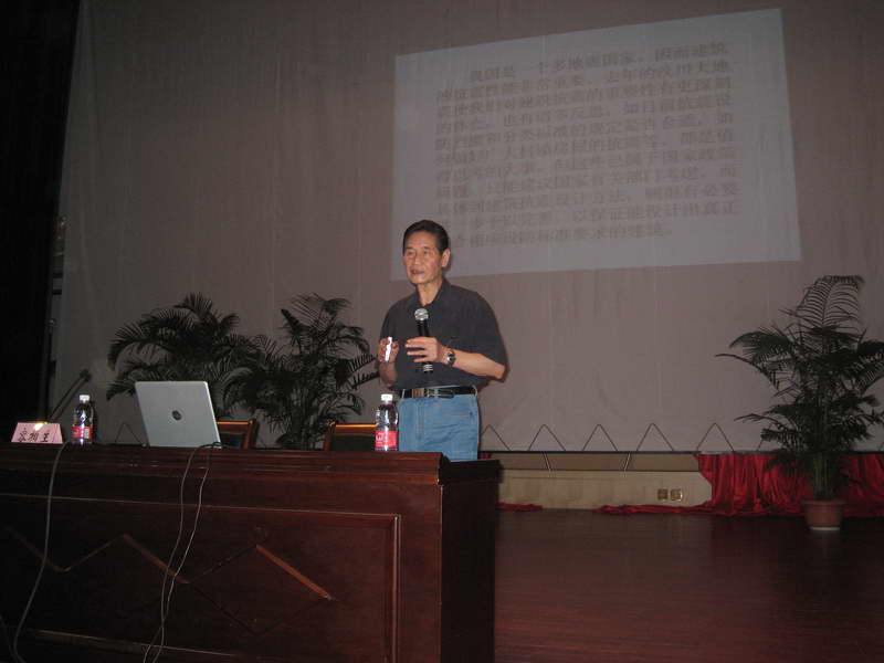 上午,容柏生院士主讲《建筑结构抗震设计方法进展》专题报告。报告主要内容有演示部分台湾地震和汶川地震震害照片;指出我国目前抗震设计有关规范不够完善之处;介绍基于性能的抗震设计方法;弹塑性分析方法中的静力法和动力法;较详细地讲解弹塑性时程分析法的内容;举例说明弹塑性时程分析方法的应用效果。