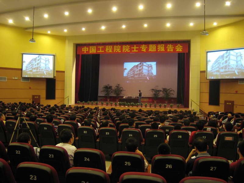 6月10日,为我市深入开展学习实践科学发展观活动,由江门市科学技术协会、五邑大学、江门市土木建筑学会联合在五邑大学吕志和大会堂举办了中国工程院容柏生、周福霖院士报告会。参加报告会有我市土木建筑专业人员、建筑企业负责人、五邑大学建筑系师生共计1200多人次。报告会还邀请了政府有关部门的领导、周边兄弟市级土木建筑学会的负责人参加,江门市政协副主席、市科协主席赵树培出席并主持大会。